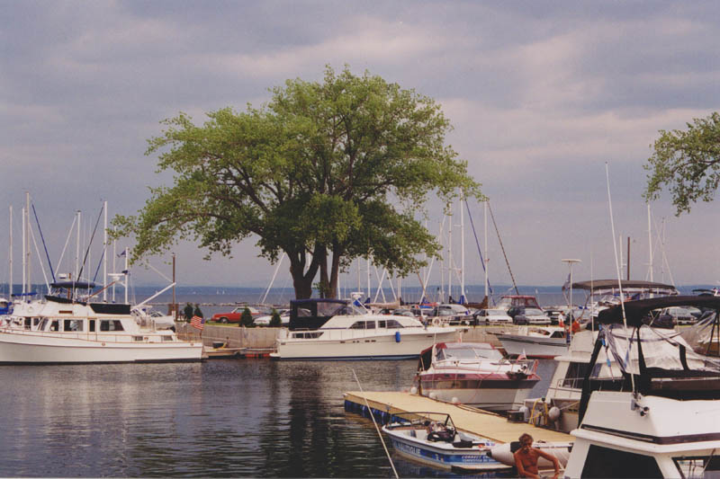 États-Unis, NY, Plattsburgh, port de plaisance sur le lac Champlain, Plattsburgh Boat Bassin, vue de la terrasse du restaurant Naked