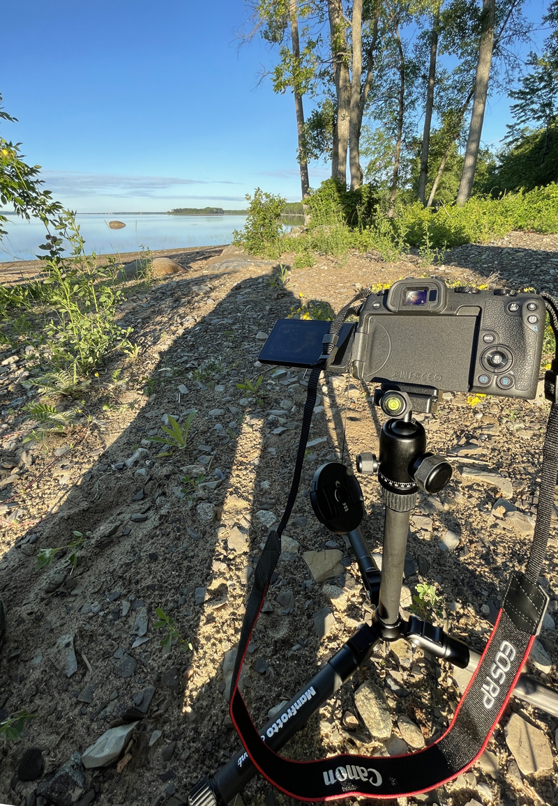 Fleuve Saint-Laurent, autoportrait aux aurores, ombres sur l'arrière-plage. 46 34' 43.7" N - 072 08' 19.2" O, Mauricie, MRC Les Chenaux, Sainte-Anne-de-la-Pérade, domaine Quessy, 0623 le mercredi 23 juin 2021, 2021_06_23_004_800_1200.  (Canon EOS RP)