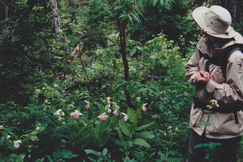d'interprétation de la Lomond River, marche gyuidée avec Marilyn Anions, le mercredi 10 juillet 1996. Cypripedium reginae (1280 x 859 pixels)
