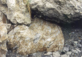 Conglomérat calcaire et galets de plage.