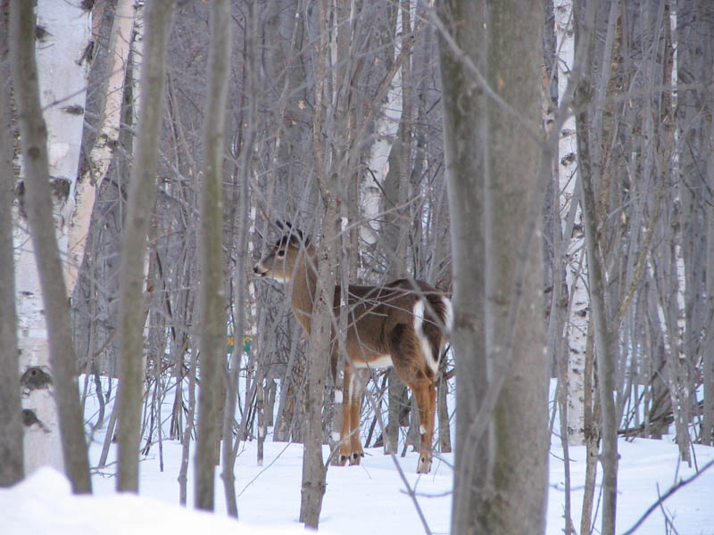 46° 35' 59.1 N - 072° 20' 23.8 O, Mauricie, MRC Les Chenaux, Saint-Prosper, route Massicotte, Odocoileus virginianus. — Cerf de Virginie, Chevreuil. — (White-tailed deer), le dimanche 19 mars 2006, photo Route_Massicotte_060_800.