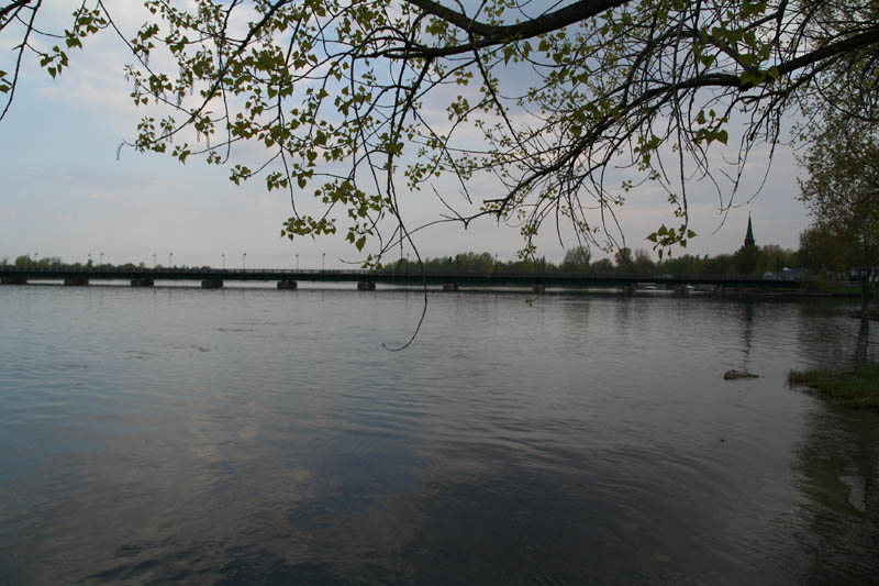du parc Goyette, rivière Richelieu vers l'aval, pont Lomer-Gouin, clocher de l'église