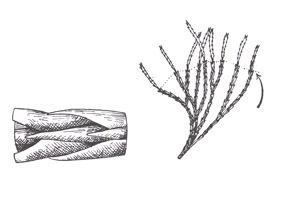 donnent à la plante une apparence étagée, munies de 4 rangs de feuilles toutes semblables ; épis
