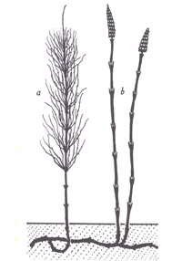 tiges fertiles (sans chlorophylle) et stériles (chlorophylliennes). On lui a