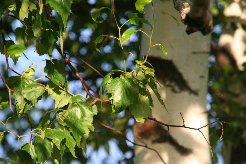 B. populifolia, mais à feuillage vert sombre (bleuâtre) et à écorce facilement exfoliée.