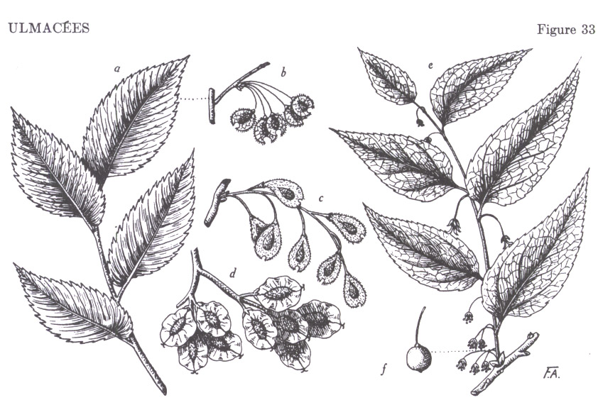 Fleurs groupées sur les rameaux de la saison précédente ; fruit : une samare arrondie. (Figure 33, a-d). 1. Ulmus