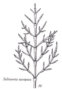 latéralement. Dans les marais saumâtres du littoral, on voit la salicorne garder