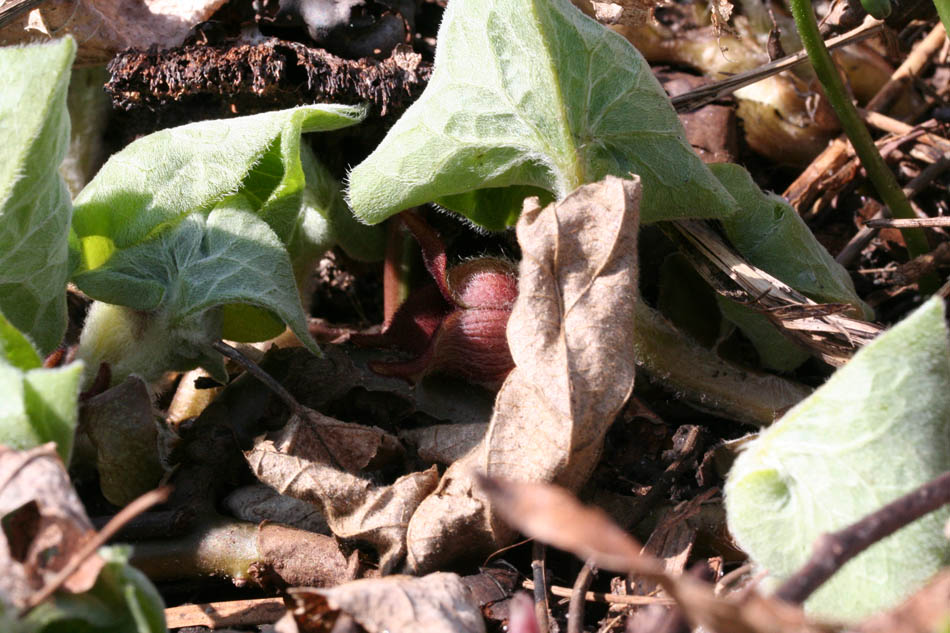 Asarum canadense Linné. — Asaret du Canada. — Gingembre sauvage. — (Wild ginger). 46 38' 12.0" N - 072 06'13.3" O, Capitale-Nationale, MRC Portneuf, Deschambault-Grondines, Grondines-Station, érablière riche, 09:04 le samedi 24 avril 2010, photo Asarum_canadense_032_950.