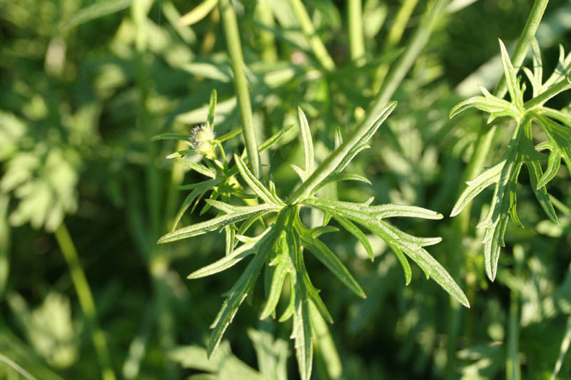 — Plante strictement dressée ; tige (longueur 60-100 cm) velue, ramifiée supérieurement ; feuilles basilaires pétiolées, 3-7-divisées, les supérieures tripartites, distantes ; fleurs (diamètre environ 25 mm) nombreuses, d'un beau