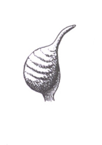 presque ; fleurs blanches ; fruit muni d'un bec défini d'environ 1 mm. Floraison