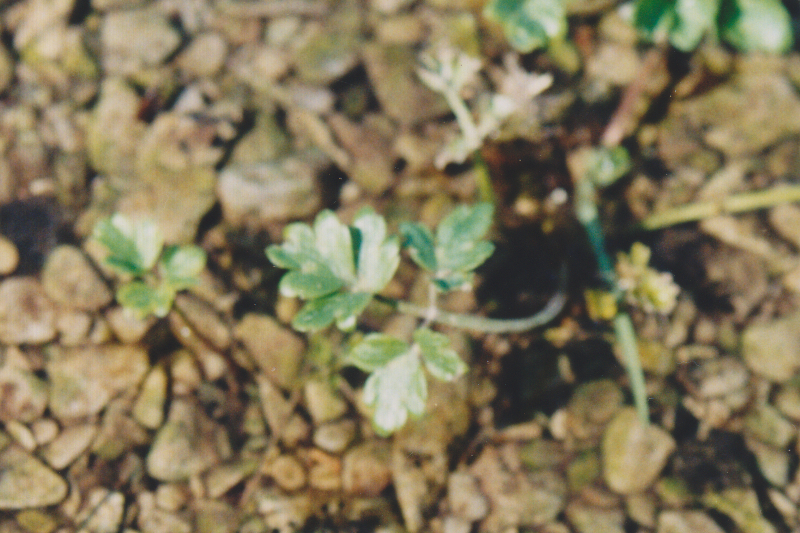 Ranunculus repens Linné (feuilles). 49° 54' 00" N - 064° 30' 00" O, Côte-Nord, MRC Minganie, L'Île-d'Anticosti, Baie Sainte-Claire, près du reef, le mercredi 12 juillet 1995, Ranunculus_repens_950710_13_800.