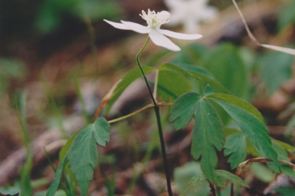 Anemone quinquefolia Linné. 46° 13' 00" N - 72° 37' 00" O, Centre-du-Québec, MRC Nicolet-Yamaska, Nicolet-Sud, boisé en bordure de la route nº 132, le vendredi 19 mai 1995, Anemone_quiquefolia_950513_21_950.