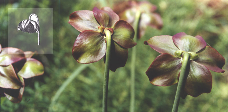 Sarracenia : S. purpurea, (a) feuilles basilaires, (b) feuille