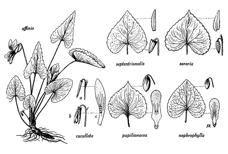 V. septentrionalis, feuille, sépale et fleur cléistogame ;