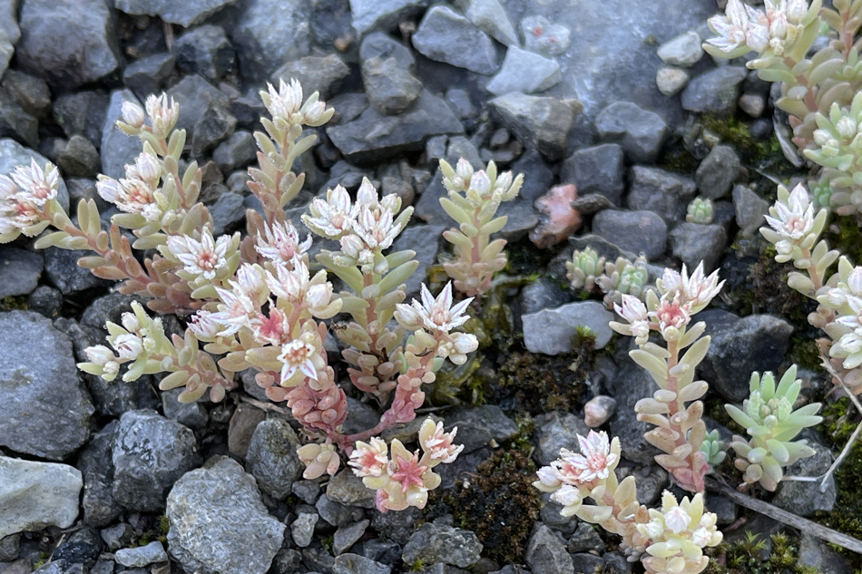 — Le nom générique signifie : s'asseoir ; allusion au port des plantes sur les rochers.