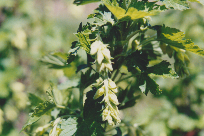 — Plante non épineuse (longueur 100-150 cm) ; feuilles (largeur 3-8 cm) suborbiculaires, 3-5-lobées, plus ou moins pubescentes, glanduleuses-ponctuées inférieurement ; fleurs jaune verdâtre, présentant un tube allongé ; bractées plus longues que les pédicelles ; baies noires, lisses. Floraison printanière. Bois et broussailles. Général.