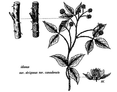Le R. idaeus proprement dit est le framboisier des jardins, d'origine européenne. Nos framboisiers indigènes sont des variétés, à inflorescence glanduleuse, de cette espèce européenne : var.