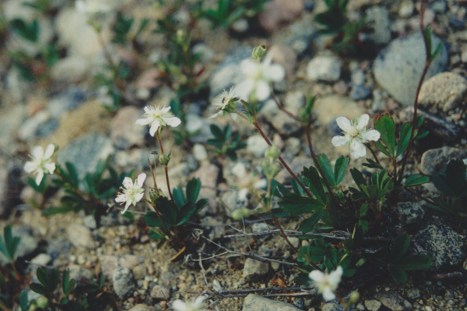 — Plante à souche ligneuse rampante et vivace, et rameaux aériens annuels (longueur 10-20 cm ) ; feuilles digitées-ternées à folioles tridentées au sommet ; fleurs (diamètre 8-10 mm) blanches. Floraison estivale. Rochers maritimes ; lieux ouverts sur les montagnes ; régions sablonneuses. Général, mais rare à l'ouest et au centre du Québec.