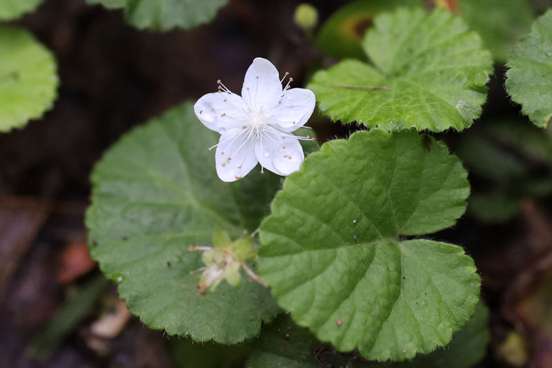 Plante vivace herbacée à tige rampante. Feuilles simples, réniformes et crénelées, alternes. Fleurs solitaires, les unes pétalées et longuement pédicellées, les autres apétales et courtement pédicellées. Sépales 5-G, imbriqués, les extérieurs dentés. Pétales blancs. Étamines nombreuses. Carpelles 5-10. Drupéoles blancs, presque secs, renfermés dans les sépales.