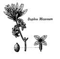 00. 00. THYMELAEACEAE, Thyméléacées, arbrisseaux ou arbustes à feuilles simples, entières et sans stipules. 00. 01. THYMELAEACEAE, Thyméléacées, clef des genres Dirca et Daphne. 00. 01. THYMELAEACEAE, Thyméléacées, figure 113, genres Dirca, Daphne. 01. 00. DIRCA Linné, Dirca, arbrisseaux rameux, à écorce fibreuse. 01. 01. Dirca palustris Linné, Dirca des marais, Bois de plomb, Leather-wood. 02. 00. DAPHNE Linné, DAPHNÉ, arbustes dressés ou décombants, à feuilles alternes. 02. 01. Daphne mezereum Linné, Daphne mézéréon, Bois gentil, Bois joli, Spurge Laurel.