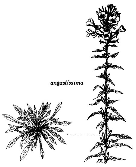 — Feuilles de la rosette longues et très étroites, lancéolées, à nervure médiane un peu rosée, finement pubérulentes, munies d'un long pétiole non marginé ; tige dressée, rougeâtre, presque glabre, munie de papilles rouges, et de branches latérales grêles ; feuilles caulinaires et bractées ondulées et très étroites ; boutons presque glabres, un peu quadrangulaires ; sépales luisants, à pointe très étalée et subterminale, rouge sur la face interne ; pétales (longueur environ 20 mm) émarginés, jaune foncé ; capsules (longueur atteignant 35 mm) grêles et atténuées à la base, presque glabres. Floraison estivale. Rivages du Saint-Laurent dans la