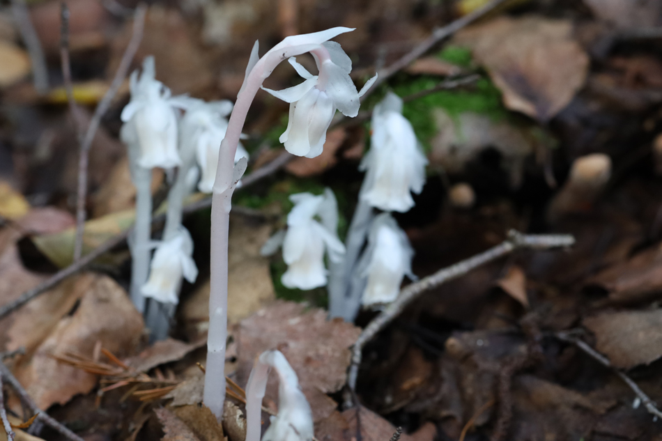 L'apparition des Monotropes uniflores soulevant les Mousses et les aiguilles roussies est l'une des merveilles de l'été dans la forêt canadienne.