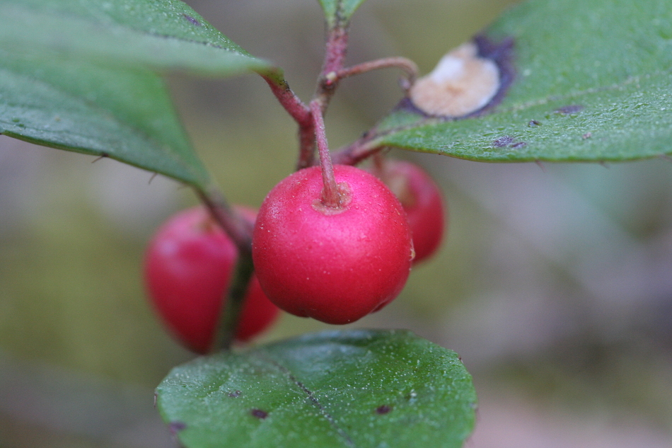 fruits (diamètre 7-11 mm) subglobuleux, écarlates, aromatiques. Floraison printanière. Bois sablonneux, surtout bois de Conifères.