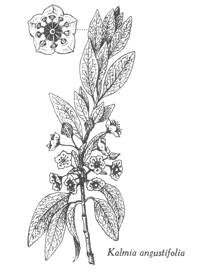 Le Kalmia angustifolia est, au point de vue écologique, le principal équivalent américain des