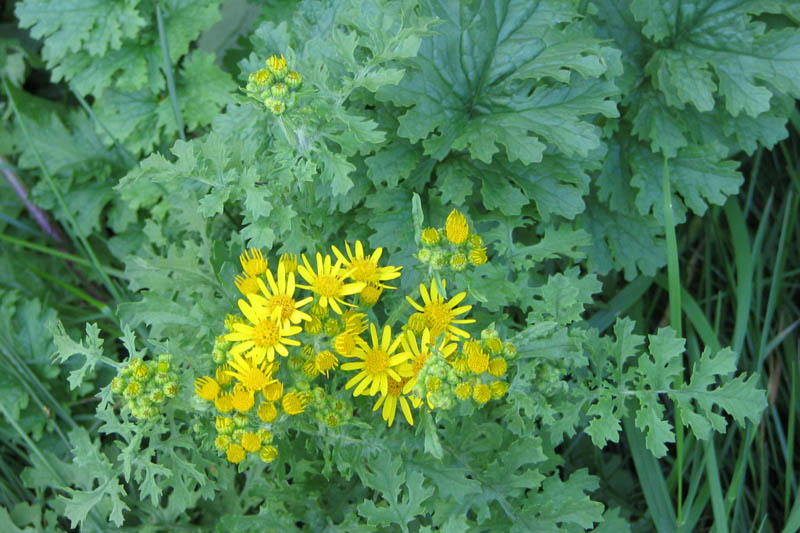 Séneçon jacobée, Herbe de Jacob, Herbe Saint-Jacques (Ragwort; Common Ragwort, Tansy ragwort, St.James Wort, Ragweed, Benweed, Staggerweed, Stinking nanny, Stinking Willie, Dog Standard, Cankerwort, Stammerwort).