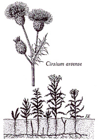 Cirsium arvense, rameau florifère, plantes entières montrant le mode de croissance