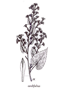lancéolées ayant la consistance de celles de l'A. cordifolius ; fleurs bleues),