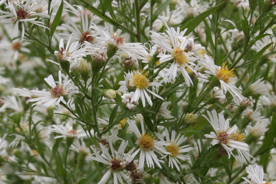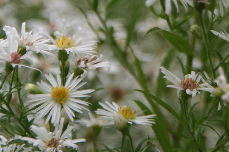 involucre (longueur 6-8 mm) ; pointe des bractées ascendante ; rayons blancs ou