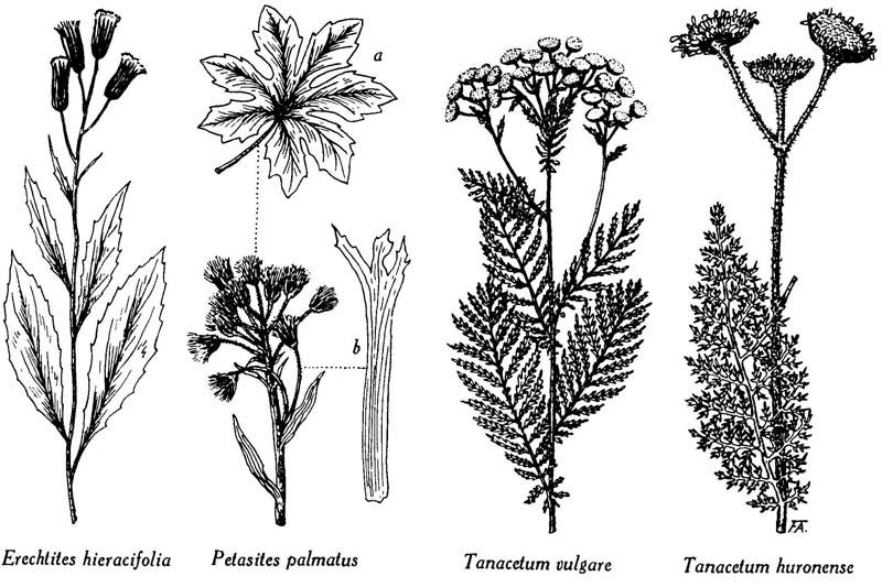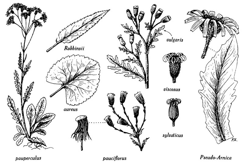 ; S. pseudo-arnica, capitule, feuille.