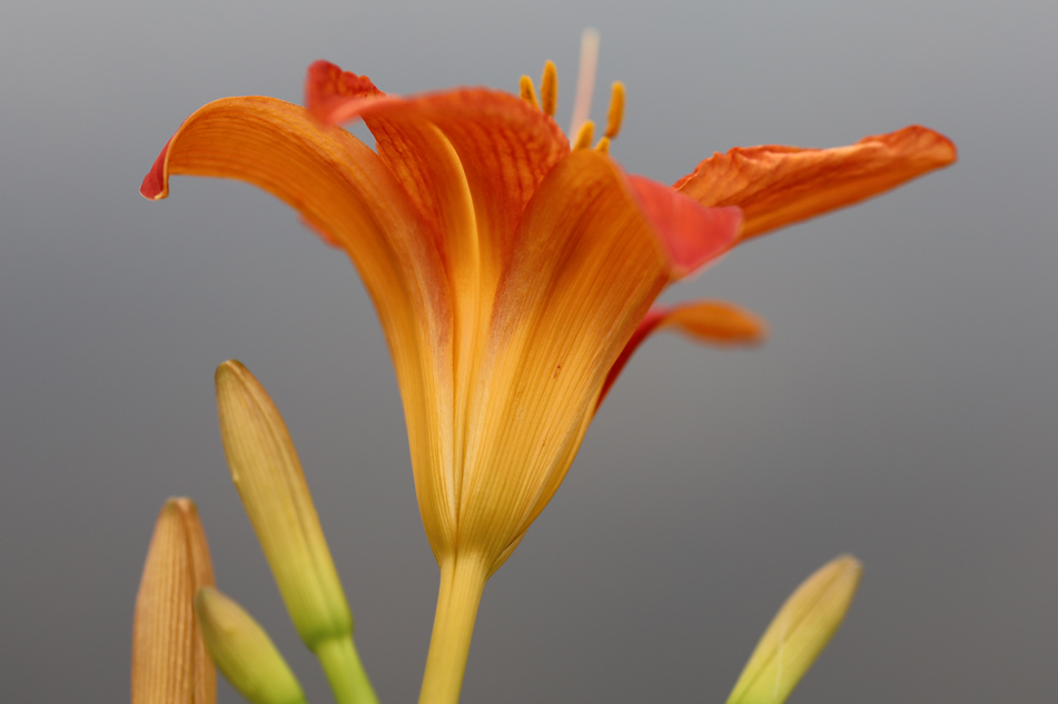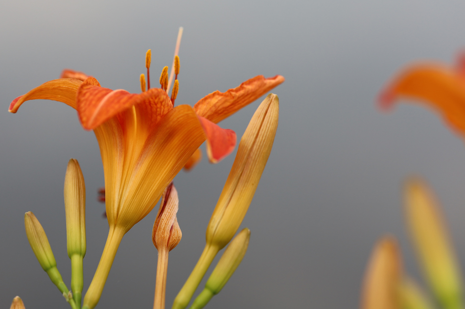 pédicellées, orange foncé, ne durant qu'un jour ; divisions du périanthe aiguës,