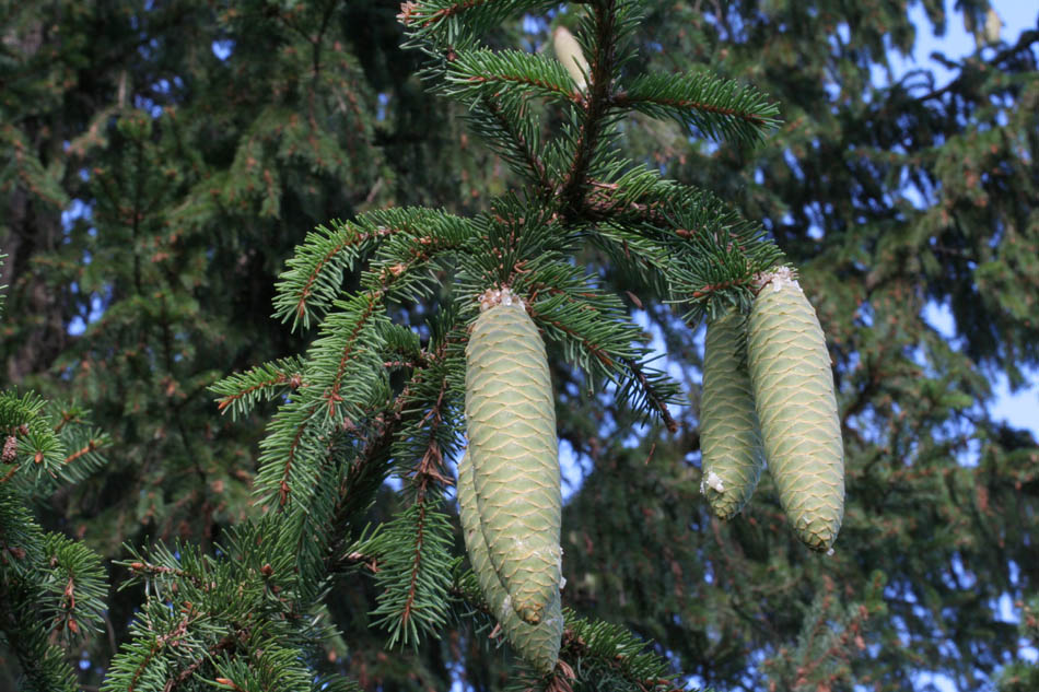 retombants et ses très longs cônes (longueur 10-13 cm) ; le P. engelmannii (épinette