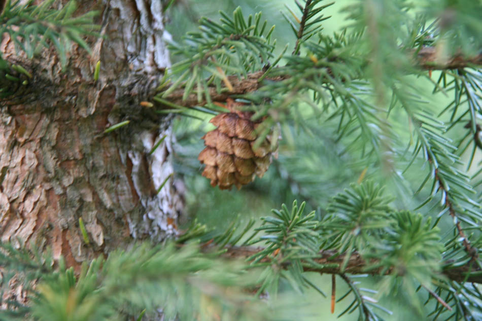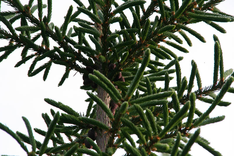 Saint-Luc-de-Vincennes, 3e rang, plantation, tête et cônes, le jeudi 18 juin 2009 06:21, photo macro Picea_mariana_004_800.