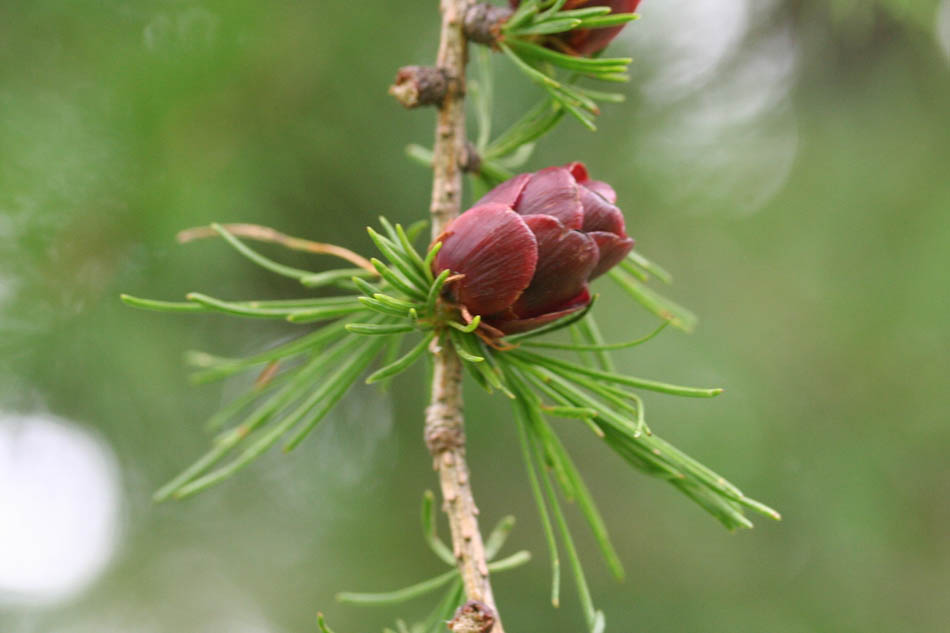 Division II.― Spermatophytes. Sous-division I. ― Gymnospermes..  Famille 10 — PINACEAE. Genre 2. —  Larix. Espèce 1. — Larix laricina (Du Roi) Koch. 46º 35' 52.6" N - 072º 15' 38.8" O, Mauricie, MRC Les Chenaux, Saint-Prosper, 1er rang Saint-Édouard, 12:58 le vendredi 3 juillet 2009, Larix_laricina_017_950.