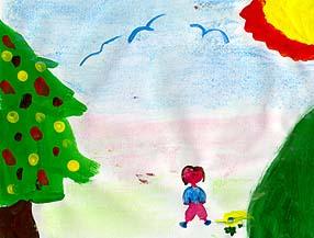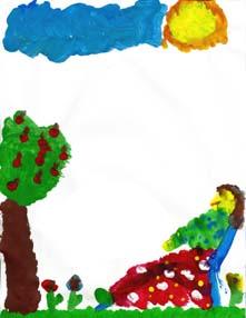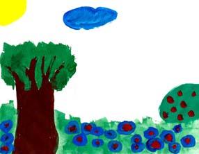 j'ai fait un paysage, il y a des fleurs, un arbre et ça représente des plantes