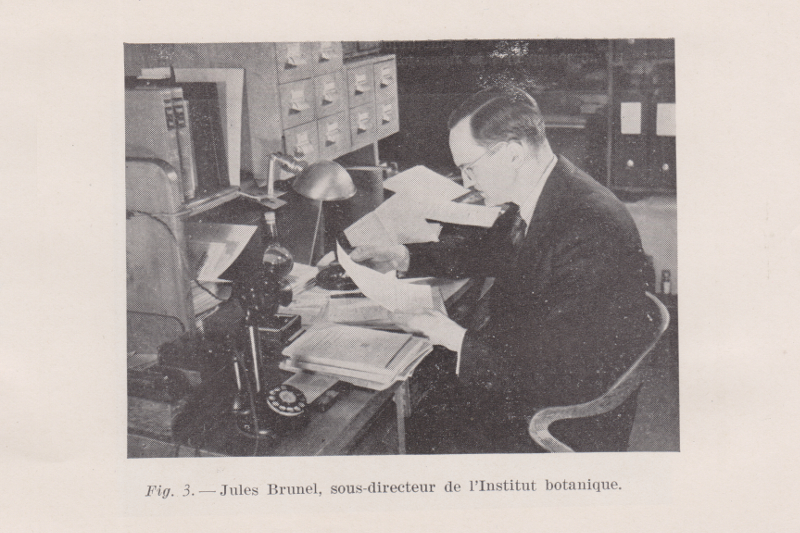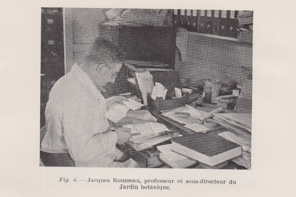 avec Émile Jacques, conservateur de l'herbier de l'Institut botanique, la préparation des manuscrits, la